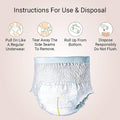 For pant-style, wear it like underwear. For tape-style, fasten securely around the waist and legs to avoid gaps and leaks.