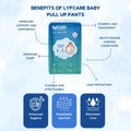 High absorbency, 360° leak protection, a gentle waistband, and breathable design — everything Lyfcare offers for your baby’s comfort.