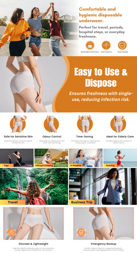 It’s a soft, single-use panty made from breathable, hygienic fabric — perfect for travel, hospital stays, or daily use.